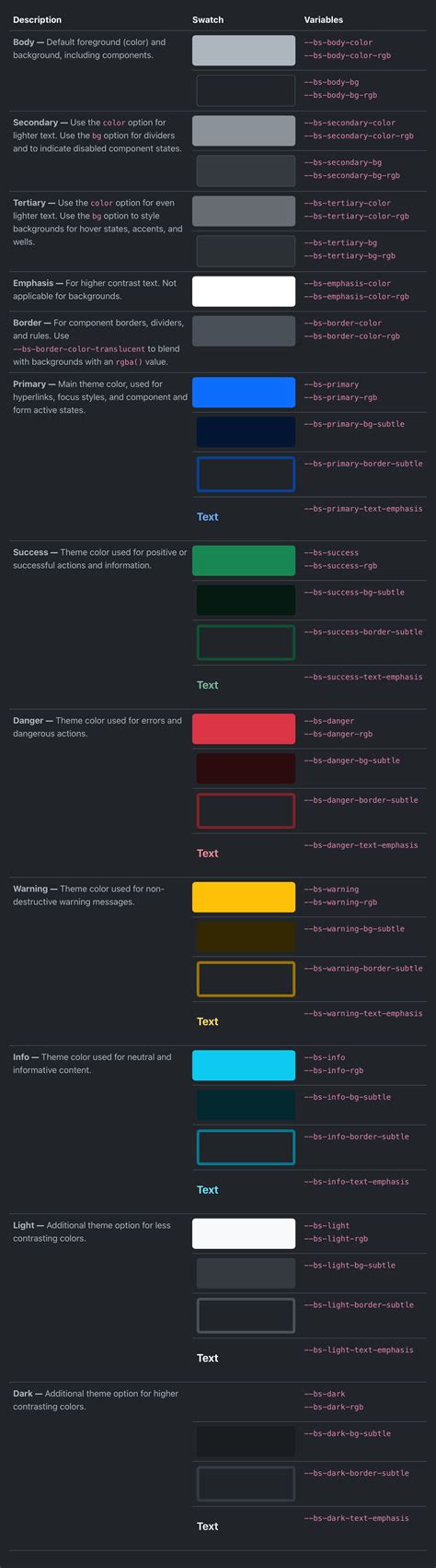 bootstrap dark mode color code. There are any references about bootstrap dark mode color code in here. you can look below.