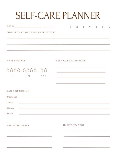 example of self care planner