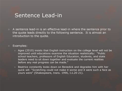 lead-in examples for quotes